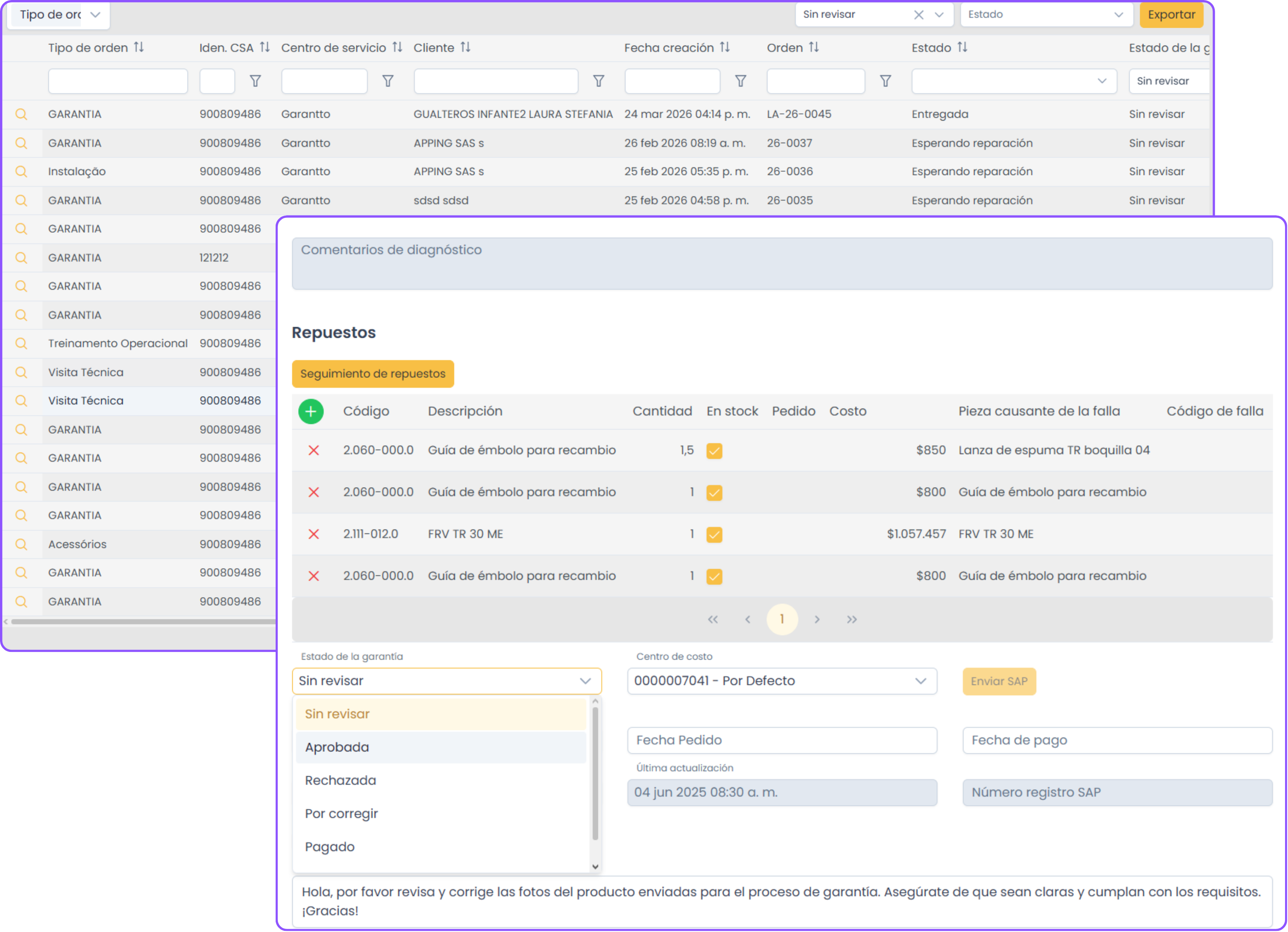 - Distribuye órdenes de garantía a la red autorizada con criterios claros y trazables.