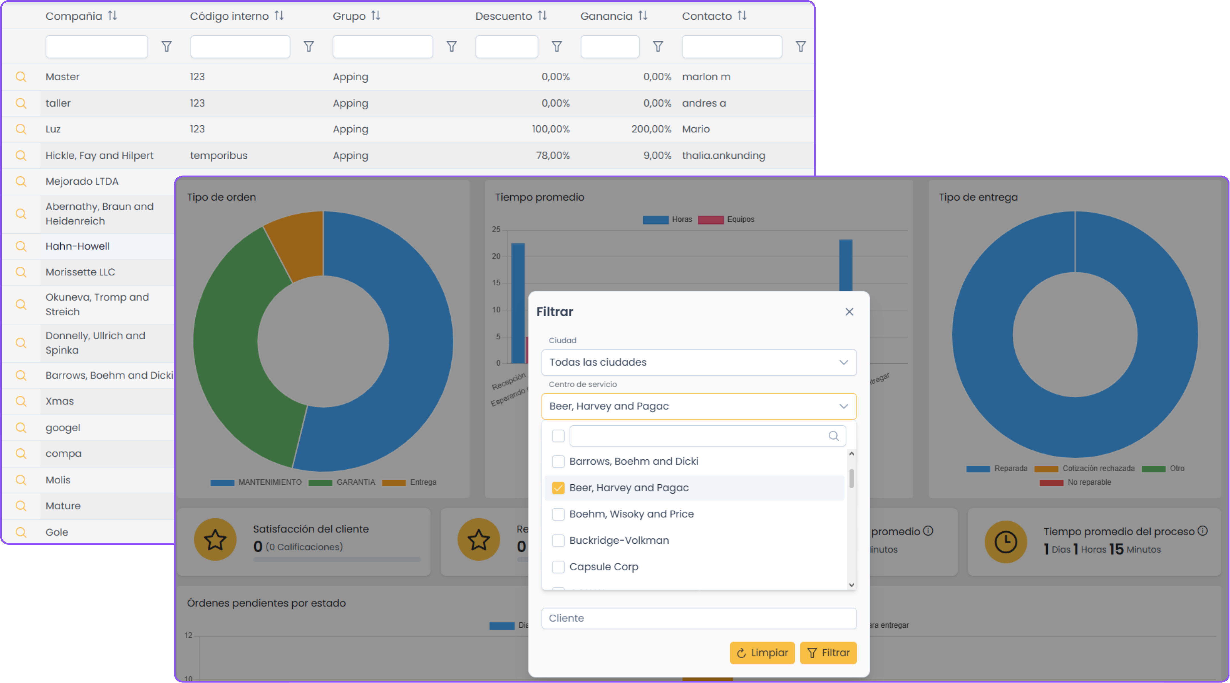 - Centraliza todas las órdenes y analiza con indicadores de desempeño.